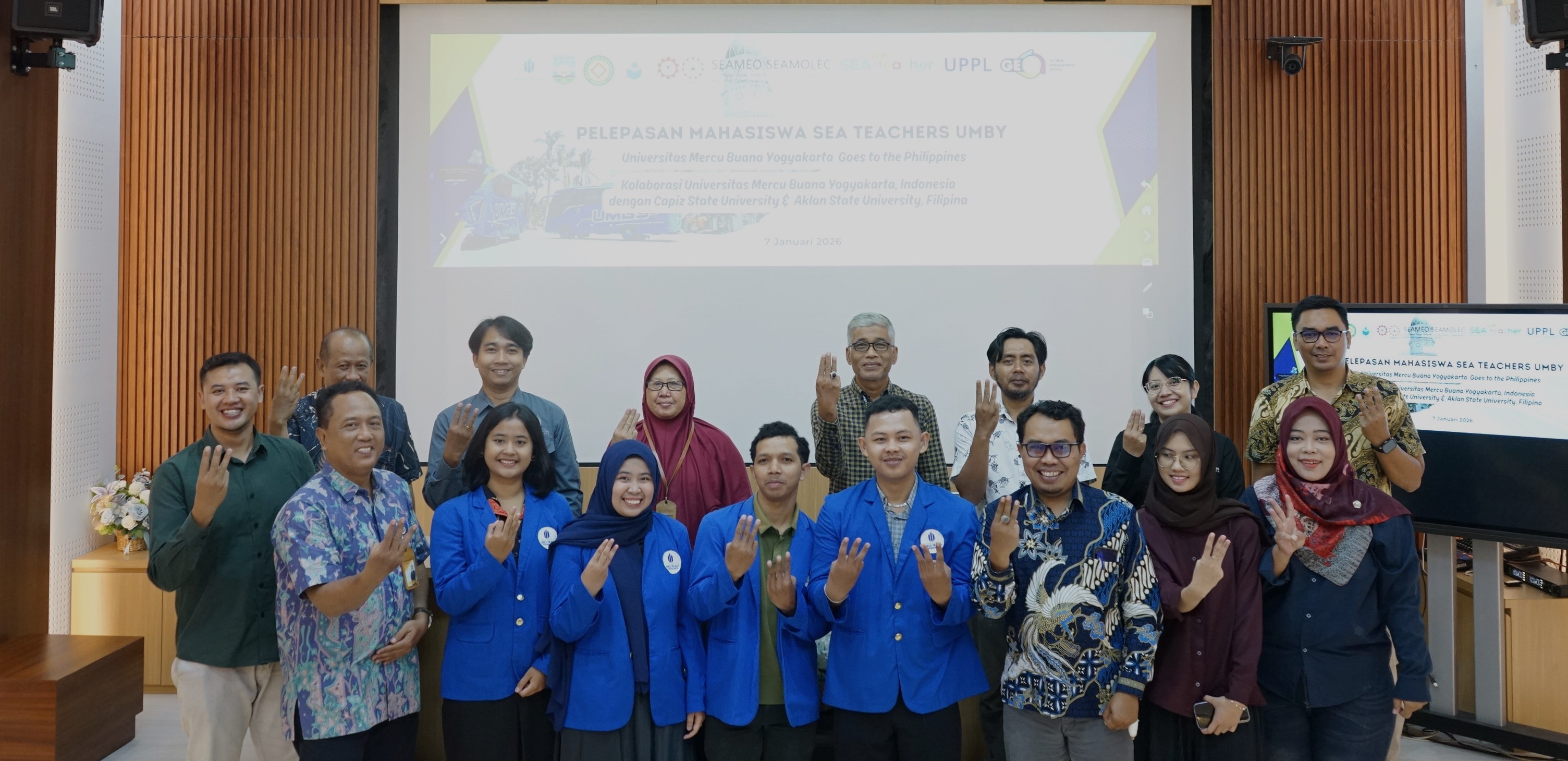 Universitas Mercu Buana Yogyakarta (UMBY) kembali mengirimkan delegasinya ke kancah internasional. Sebanyak empat mahasiswa Fakultas Keguruan dan Ilmu Pendidikan (FKIP) UMBY terpilih mengikuti program SEA Teacher atau PPL Internasional di Filipina. Keempatnya dilepas secara resmi oleh Rektor UMBY, Dr. Ir Agus Slamet, S.TP., MP., MCE., di Ruang Teater Kampus 1 UMBY, Rabu (07/01/2026).