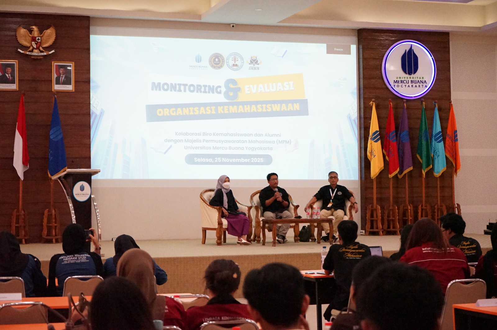 Biro Kemahasiswaan dan Alumni (BKA) Universitas Mercu Buana Yogyakarta (UMBY) berkolaborasi dengan Majelis Permusyawaratan Mahasiswa (MPM) sukses menyelenggarakan Kegiatan Monitoring dan Evaluasi (Monev) Lembaga Kemahasiswaan (LK) pada Selasa, 25 November 2025. Acara ini mengharuskan seluruh organisasi mahasiswa, LK, Unit Kegiatan Mahasiswa (UKM) di lingkungan kampus UMBY untuk mempresentasikan laporan kegiatan setahun penuh. Acara ini menjadi forum evaluasi kinerja, diskusi sekaligus memastikan bahwa dana kemahasiswaan telah digunakan secara efisien dan tepat sasaran sesuai Tri Dharma Perguruan Tinggi.