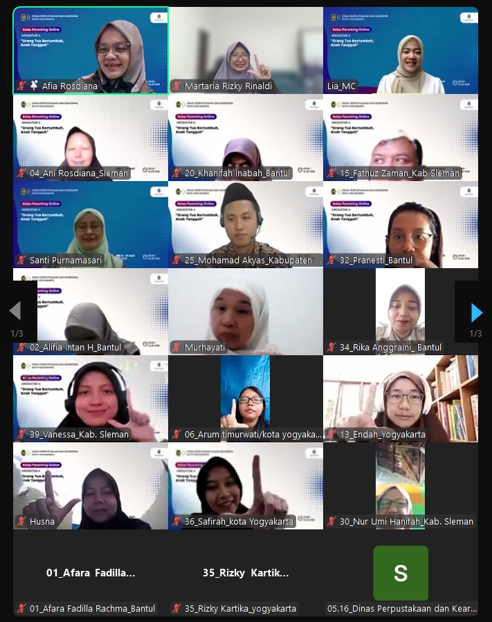 Kepala Dinas Perpustakaan dan Kearsipan Kota Yogyakarta, Afia Rosdiana, M.Pd., membuka acara dan menyampaikan apresiasi atas kolaborasi antara institusi pemerintah dan pendidikan. Ia menilai kegiatan ini sebagai langkah strategis dalam meningkatkan literasi keluarga, khususnya dalam pengasuhan anak berbasis ilmu psikologi.