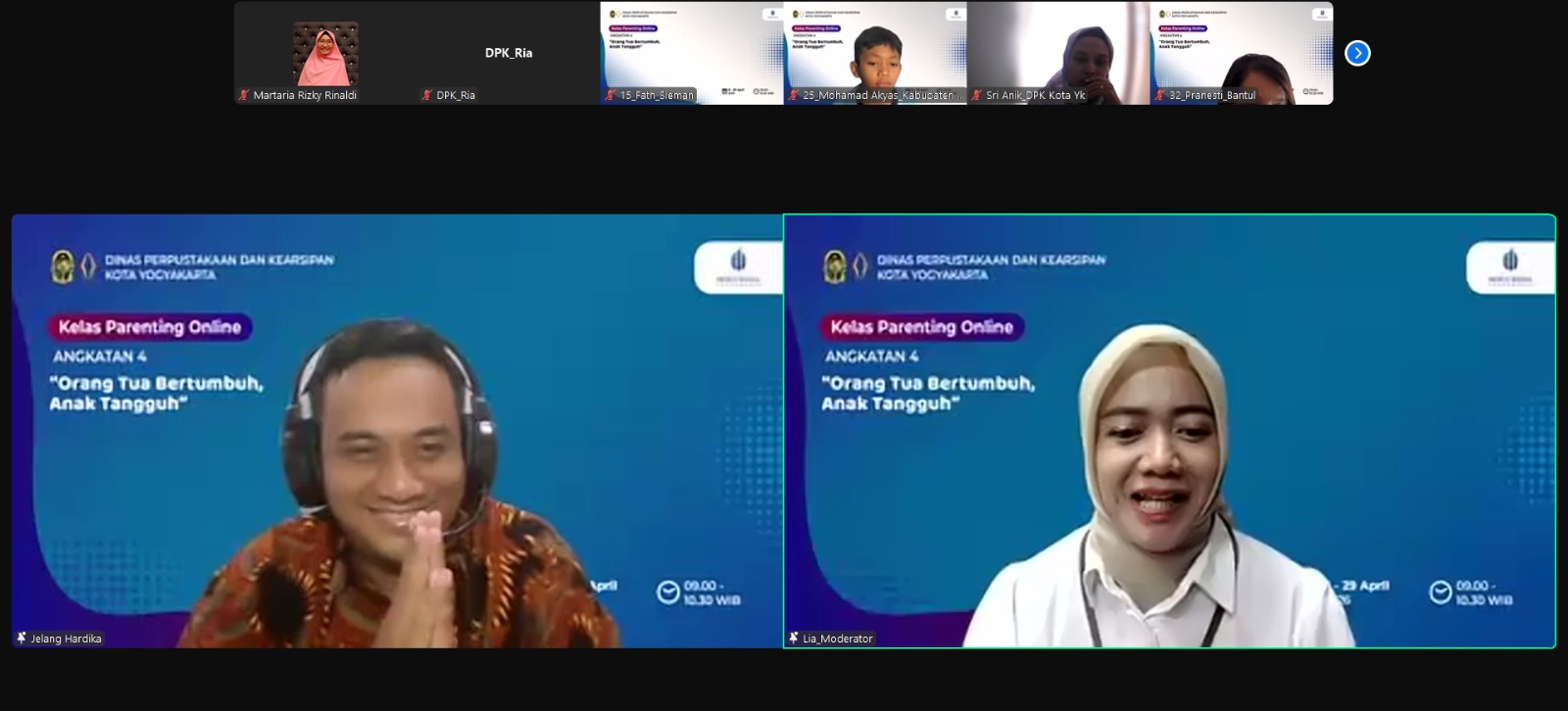 Kegiatan ini dilaksanakan dalam rangka Pengabdian kepada Masyarakat (PkM) bekerja sama dengan Dinas Perpustakaan dan Kearsipan Kota Yogyakarta. Dalan kegiatan ini, Jelang Hardika, M.Psi., Psikolog sebagai Ketua PkM sekaligus narasumber utama, dengan Dr. Martaria Rizky Rinaldi, M.Psi., Psikolog sebagai anggota.