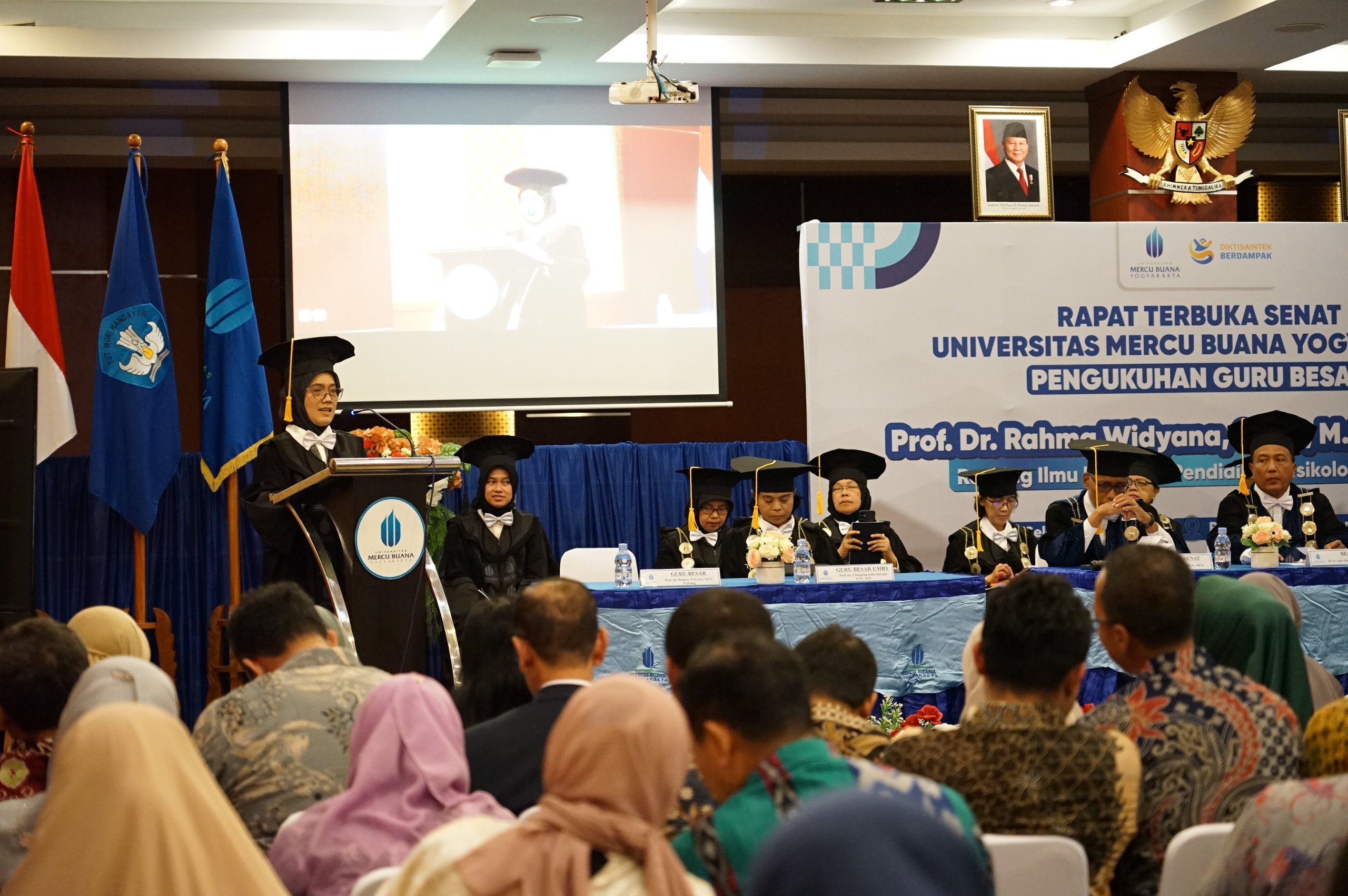 Universitas Mercu Buana Yogyakarta (UMBY) kembali mengukuhkan guru besar baru. Yakni Prof. Dr. Rahma Widyana, S.Psi., M.Si., Psikolog dengan Ranting Ilmu Psikologi Pendidikan: Psikologi Sekolah. Hingga kini, UMBY telah memiliki tujuh guru besar.