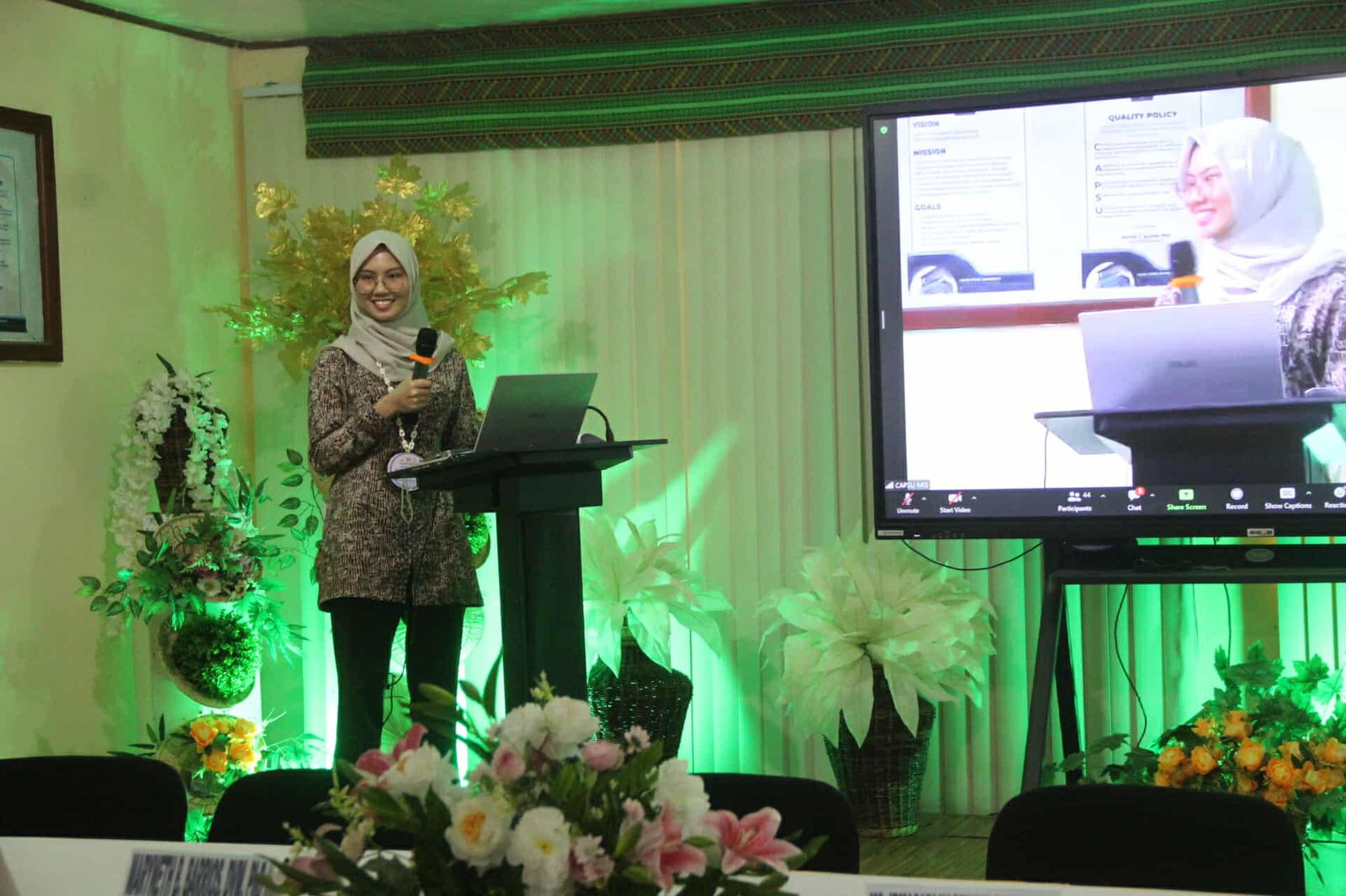 Sementara itu Maryneth B. Barrios, PhD, dosen Capiz State University menguraikan materi “Darag Native Chicken: A Resilient Poultry Breed for Smart and Sustainable Agriculture”. Dr. Barrios memperkenalkan ayam Darag sebagai salah satu unggas lokal unggulan Filipina yang memiliki ketahanan tinggi terhadap lingkungan tropis, kemampuan adaptasi yang baik, serta potensi besar untuk dikembangkan dalam sistem peternakan berkelanjutan.