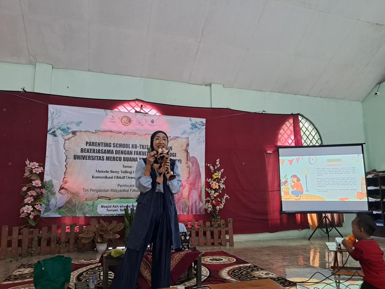 Dosen Fakultas Psikologi Universitas Mercu Buana Yogyakarta (UMBY) kembali melakukan kegiatan pengabdian kepada masyarakat (PkM) sebagai bentuk mengimplementasikan ilmu psikologi. Tim Psikologi UMBY bekerjasama dengan KB-TKIT Husnayain yang beralamat di Tegalsari, Lumbungrejo, Tempel Sleman. Tim ini menggelar acara “Komunikasi Efektif antara Orang Tua dan Anak TK melalui Metode Story Telling” di Masjid MI Husnayain pada Sabtu, 25 Oktober 2025.