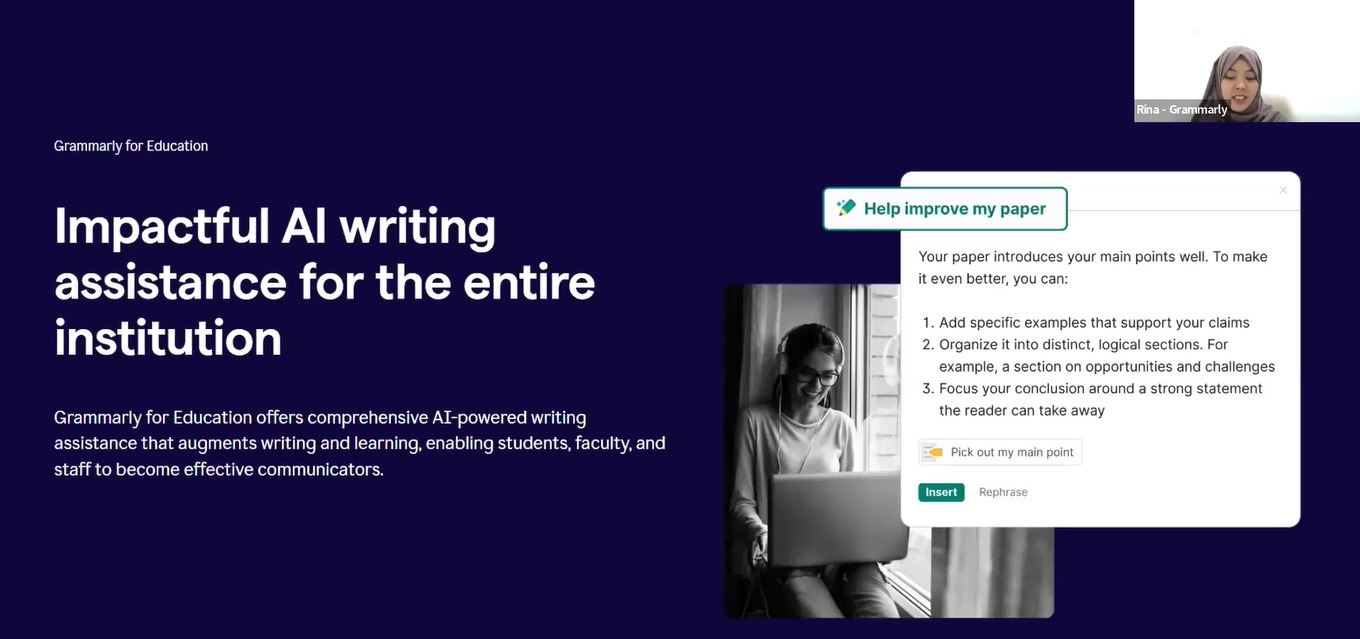 “Teknologi AI memiliki banyak manfaat namun harus digunakan dengan bijak. AI Grammarly tidak hanya generative AI saja tapi sudah ada AI detection yang membantu kita mengetahui sebanyak apa tulisan yang di generate AI ini sehingga terlihat presentasenya,” ujarnya.