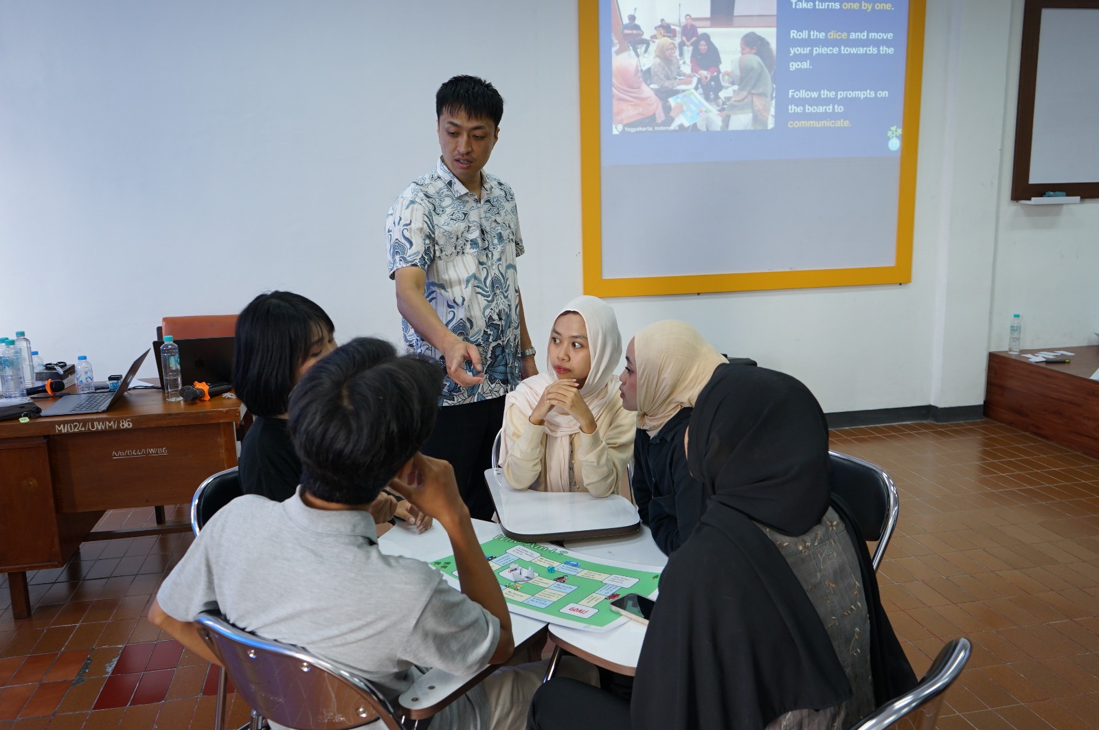 “Para mahasiswa dapat mengembangkan kemampuan berbahasa Inggris dengan dikemas pada sebuah permainan kemudian mereka saling memberi pertanyaan sehingga mau tidak mau akan memberikan respon dan menguraikan hal yang ditanyakan. Hal ini akan berdampak pada mahasiswa untuk berani berkomunikasi, berfikir lebih kritis, mengkolaborasikan berbagai hal, serta membingkainya dengan cara kreatif,” terang Yuta Otake.