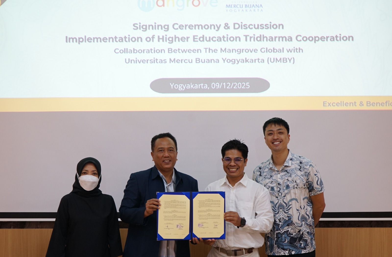 Universitas Mercu Buana Yogyakarta (UMBY) kembali menunjukkan komitmennya dalam meningkatkan kualitas melalui kerja sama. Kali ini, UMBY menandatangani Memorandum of Understanding (MoU) dengan The Mangrove Global, pada Selasa (09/12/2025).
