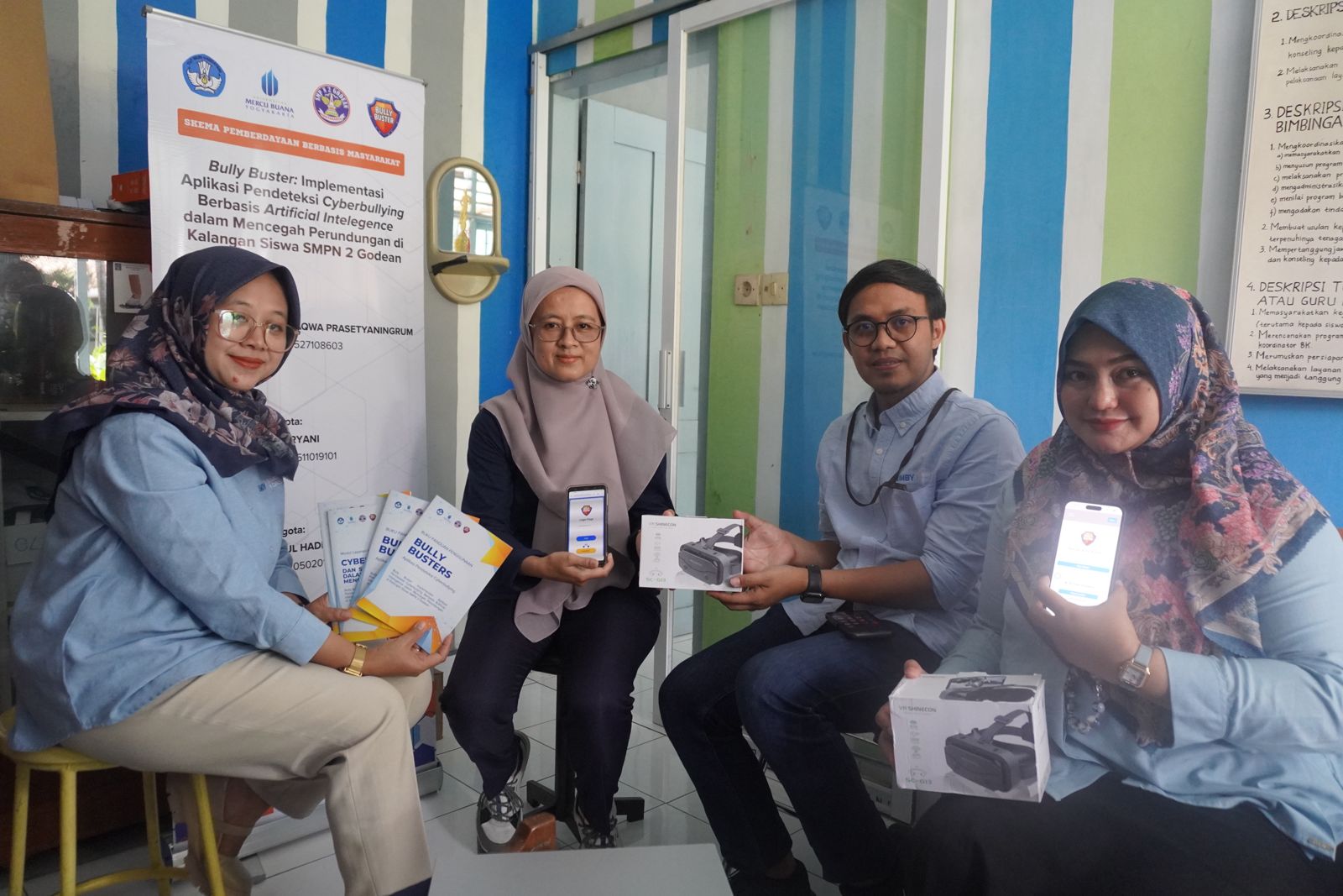 Universitas Mercu Buana Yogyakarta (UMBY) resmi meluncurkan Bully Buster pada Jumat, 3 Oktober 2025. Bully Buster adalah aplikasi berbasis Artificial Intelligence (AI) dan Virtual Reality (VR) untuk mendeteksi, mencegah, serta menangani kasus cyberbullying di SMPN 2 Godean. Program ini merupakan hasil hibah Kementerian Pendidikan Tinggi, Sains, dan Teknologi Republik Indonesia melalui skema Pengabdian kepada Masyarakat. Tim Pengabdi di ketuai oleh Dr. Ir. Putri Taqwa Prasetyaningrum, S.T., M.T., MCE. dengan anggota Eka Aryani, M.Pd. dan Abdul Hadi, M.Pd.
